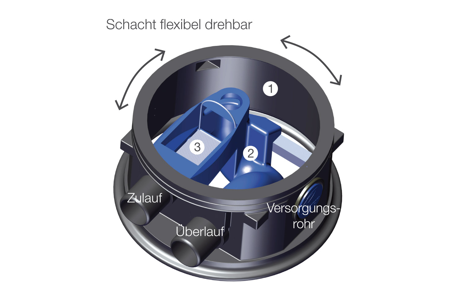 - prilagodljiva in vrtljiva poravnava za dovodno in odvodno cev,